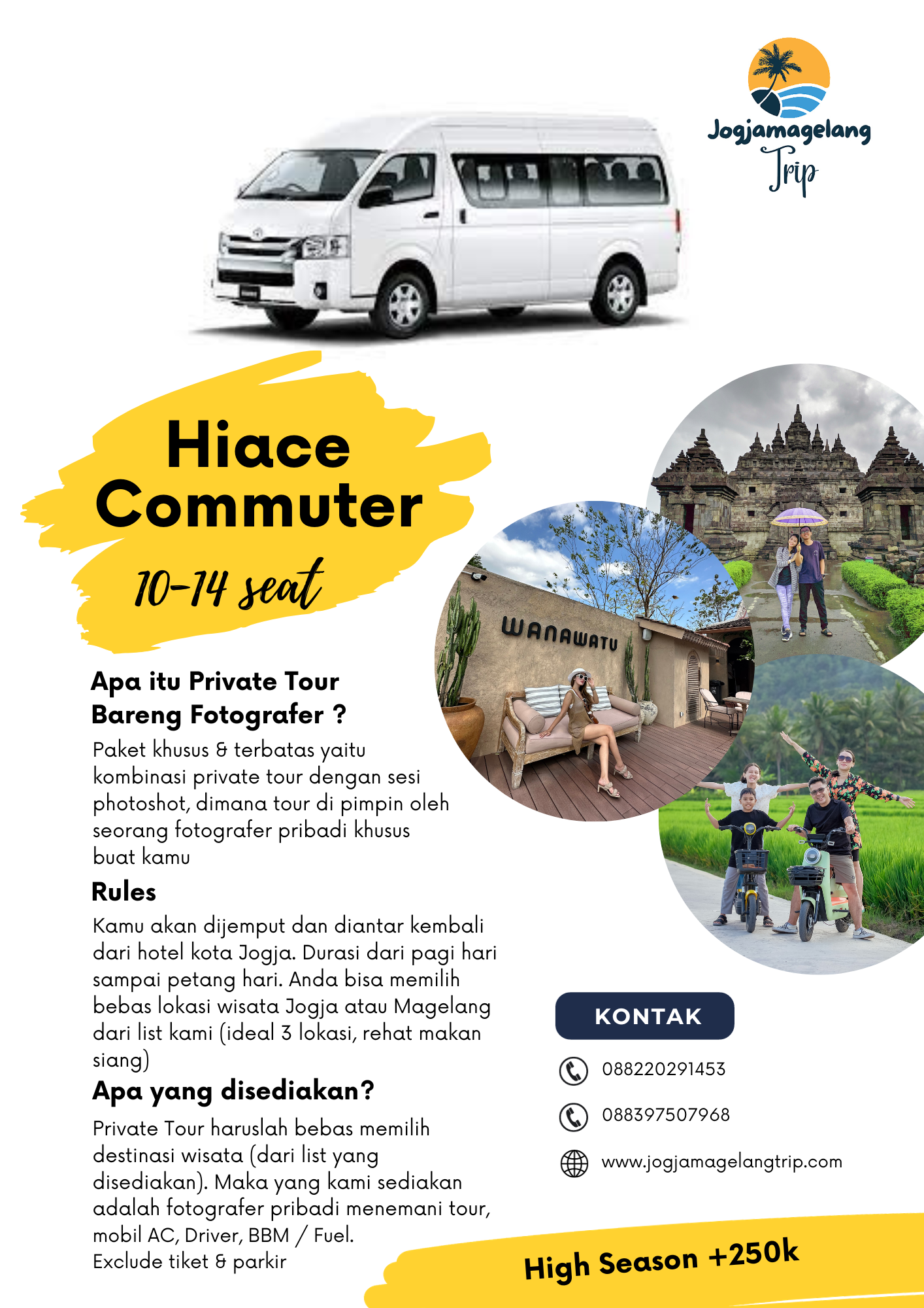 - Pada highseason akan ada penyesuaian +250k (mobil)